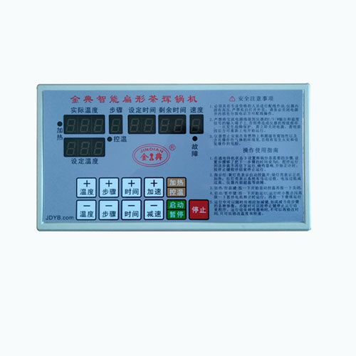 我公司隆重推出最新智能扁形茶机控制器,设计优秀,功能多,智能程度高,带变频调速,质量稳定可靠;操作简单方便,易于上手;彩屏显示,显示内容丰富直观,外形美观大气;本机在具有原双模炒茶功能的基础上增加了炒板速度可调和快速调温功能,使之炒制效果更好,更能符合高级炒茶师傅的炒制方式。控制器数据测量、控制稳定可靠,抗干扰能力强,压力测控精准快,不跑档;采用先进的温控算法,接触器输出,控温精准温差小。通用性强,茶农使用有本控制器的茶机,即使没有380V三相电也能用。降低成本和故障率,安装接线方便,主电机不用再配变频器和交流接触器,220V电机无需配置启动电容,杜绝由启动电容的容量衰退而引起烧坏电机等故障。