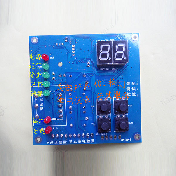 XLJ-300/400线控吸料机电脑板,按键显示板与电源输出板分离,安装方便,操作简单。集成了300G/700G,400G/800G的常规功能,额外再增加电磁阀脉冲除尘功能。采用两位高亮翠绿数码管显示时间和状态,色彩艳丽视觉分辨率高。