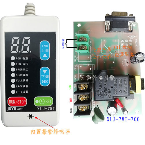 LJ-78T手持式线控吸料机电脑板,按键显示板与电源输出板分离,安装方便,操作简单。集成了300G/700G,400G/800G的常规功能,额外再增加电磁阀脉冲除尘功能。采用两位高亮翠绿数码管显示时间和状态,色彩艳丽视觉分辨率高。手持器上内置大音量蜂鸣报警器,发生电机过·载,缺料时会报警,提醒操作员处理。